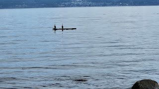 Klootchman Rock is believed to have come from the north and been deposited during the Ice Age by a glacier. I tried to see why it was called "Woman" by the Indigenous but I did not see anything that looked like a woman's face or body. As I approached it I could see that it had lines of white quartz running through it that looked almost like roots going down to the beach and water.
